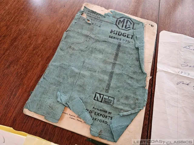 This 1953 MG TD has a long, well-documented history. It originated in Vancouver, Washington, and was sold to its Oregon owner in 1976, who kept it for more than 50 years. It’s now California-titled and owned by a local collector friend. The car comes with over 45 years of repair orders showing consistent upkeep, along with the original owner’s manual. Though it still wears its Oregon "Special Interest" plates, it’s fully registered and titled in California.