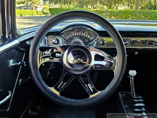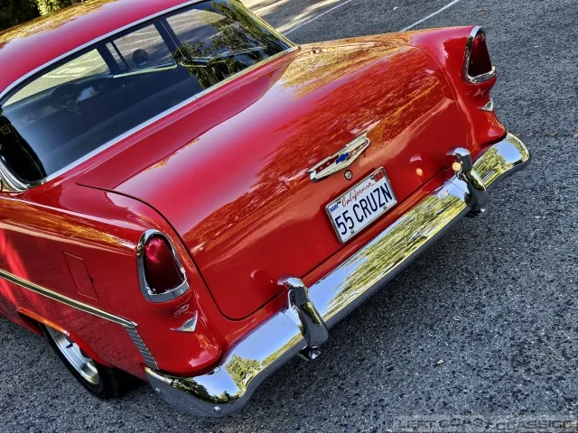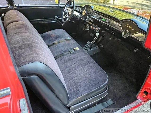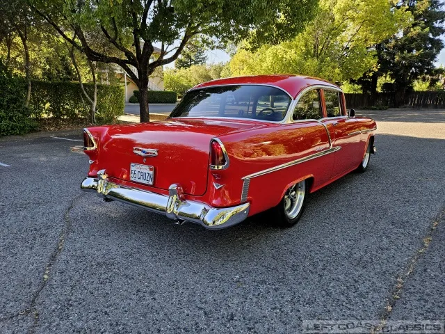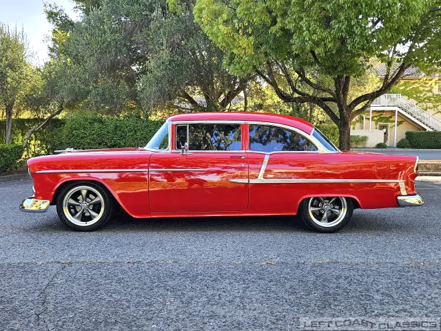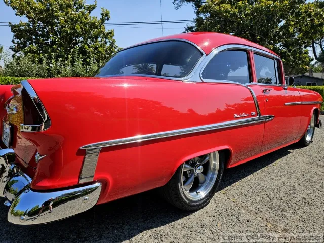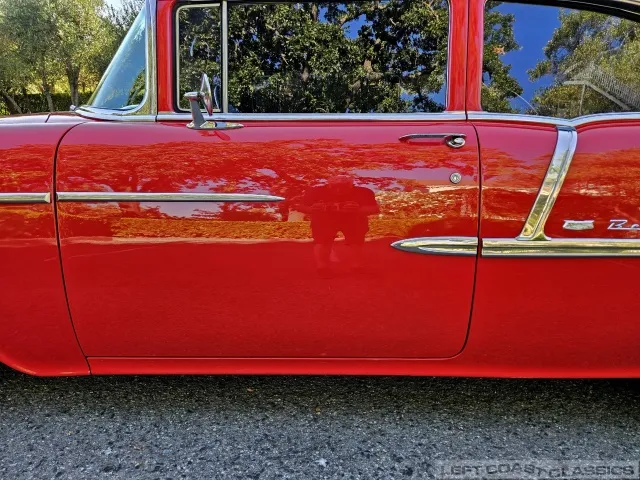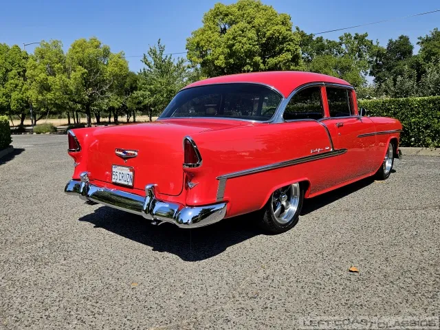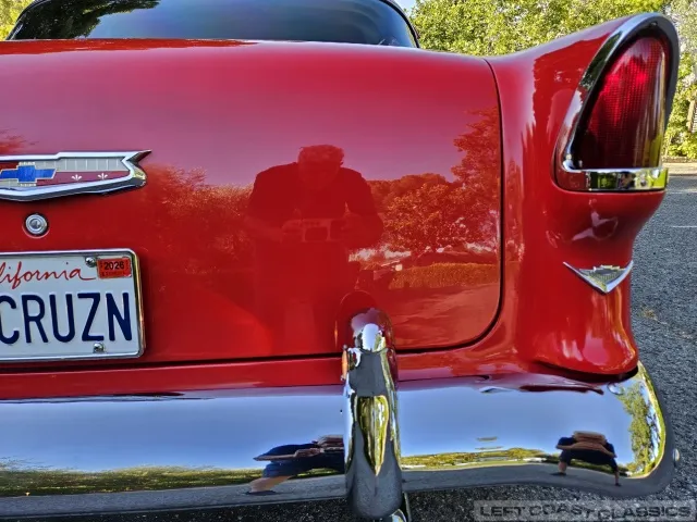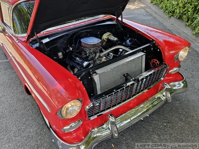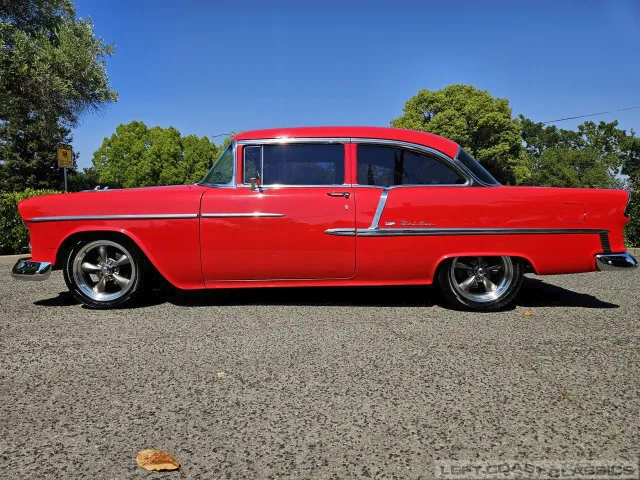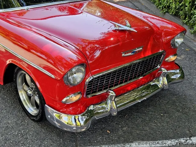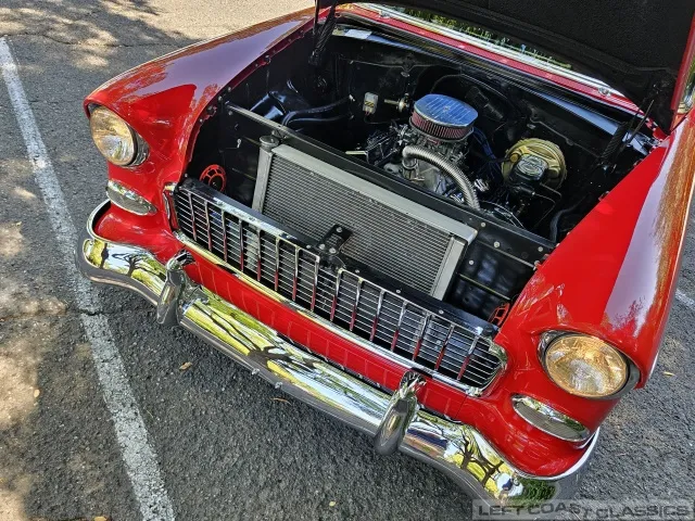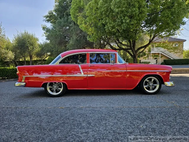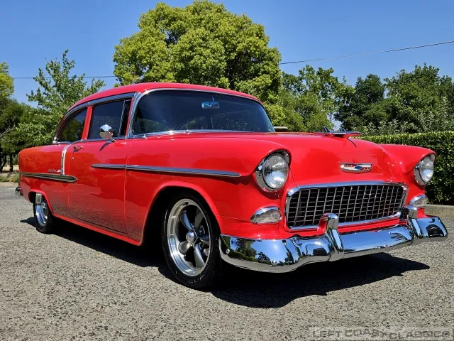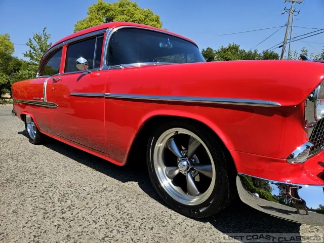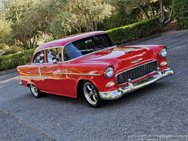 This 1955 Chevrolet Bel Air 2-Door Sedan, assembled in Oakland, CA (VIN VC550072830), was originally finished in India Ivory over Skyline Blue with a Light Blue and Dark Blue cloth/vinyl interior (Trim #513). Purchased in Los Angeles around 2010 after over 20 years of storage by its previous owner, it underwent a frame-on restoration.