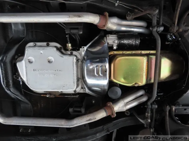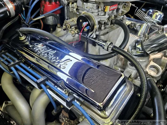 The 350 V8 engine, paired with a Turbo 400 Hydramatic transmission and B&M shift kit, provides robust performance. It features an Edelbrock 4-barrel carburetor, Holley intake manifold, chrome valve covers, and a heavy-duty aluminum radiator.