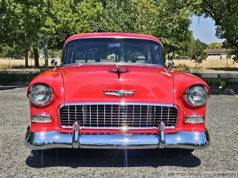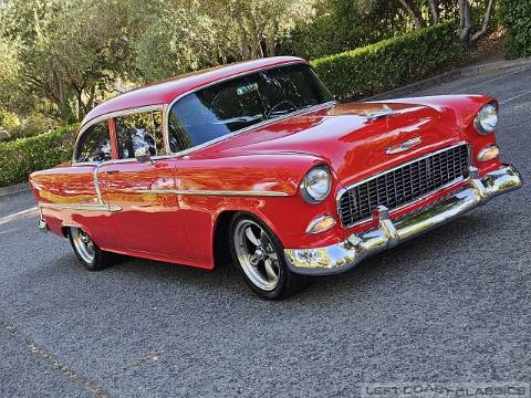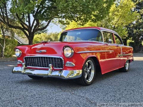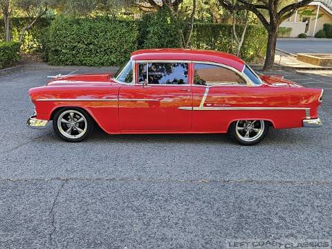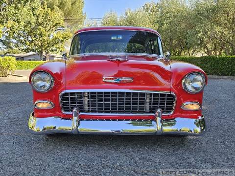 View close-up detailed photos of this 1955 Chevrolet Bel Air's interior, engine, undercarriage and body. This cool custom Bel Air is for sale from Left Coast Classics in Sonoma California