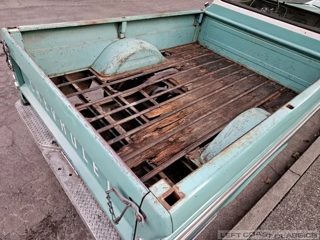 The exterior wears its beautifully patina’d original paint, a look that many enthusiasts might choose to “lock in” with a light clearcoat. The original wood bed is ready for replacement, but otherwise, this old Chevy has aged remarkably well over the past 59 years.