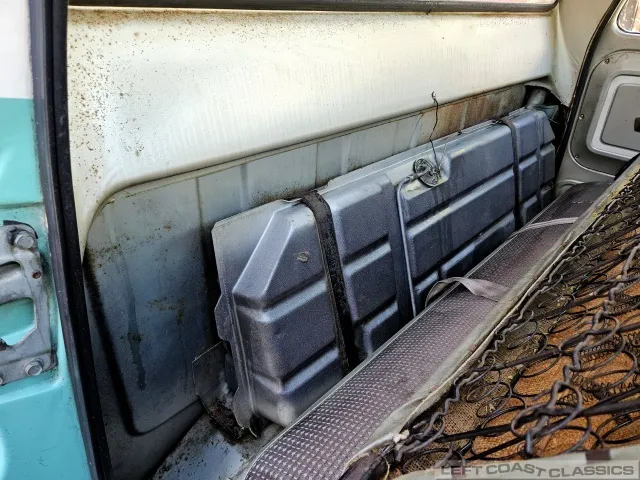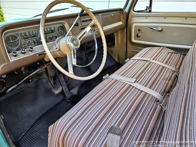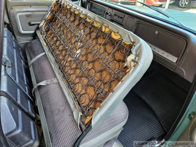 Inside, it’s equally impressive. It still wears its original Fawn vinyl seat cover, with the build sheet still tucked behind the seatback (albeit tattered). A new reproduction seat cover would be a smart idea, though we’ve placed a simple cover over it for preservation. Otherwise, the interior is a true time capsule and a treat to cruise around in.