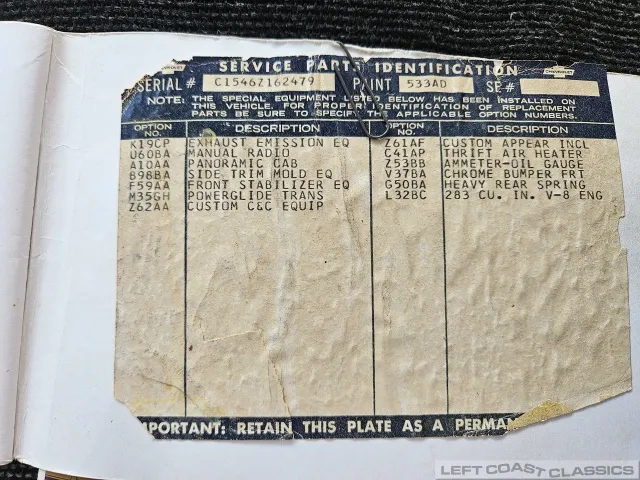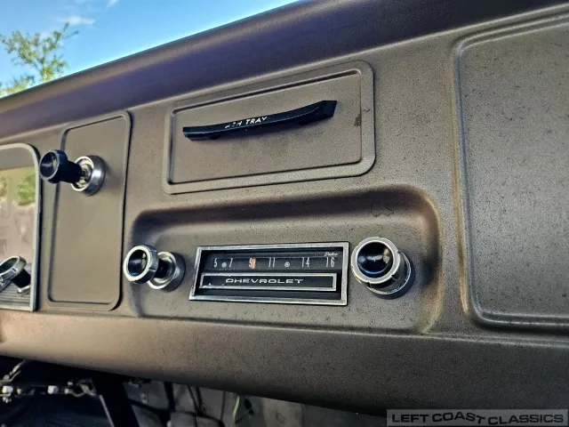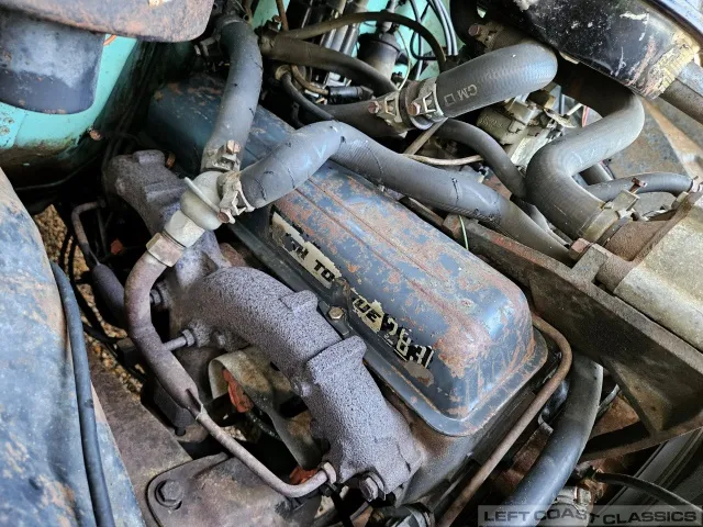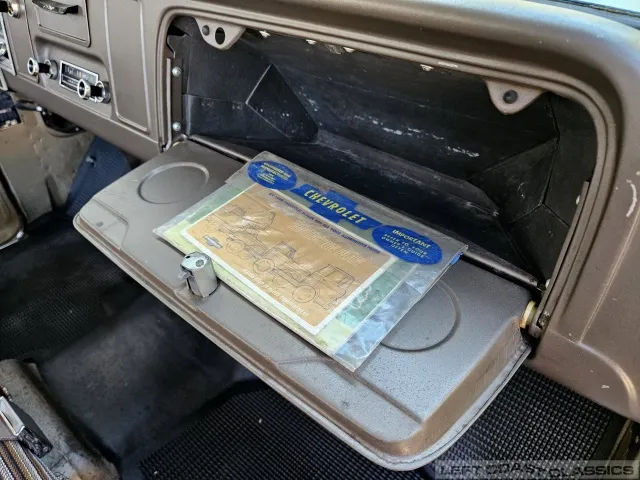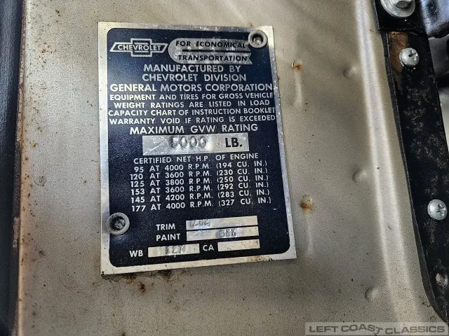 The original High-Torque 283-cubic-inch V8 starts quickly and runs strong. It appears to have never been out of the truck. The Powerglide automatic transmission shifts smoothly, and the truck handles well. Under the hood, everything remains highly original, with no signs of over-restoration or rattle-can paint — just pure and honest.