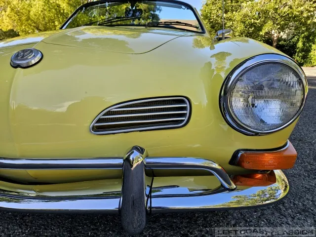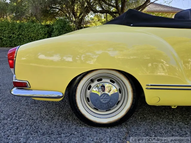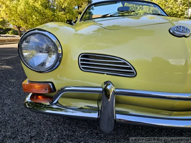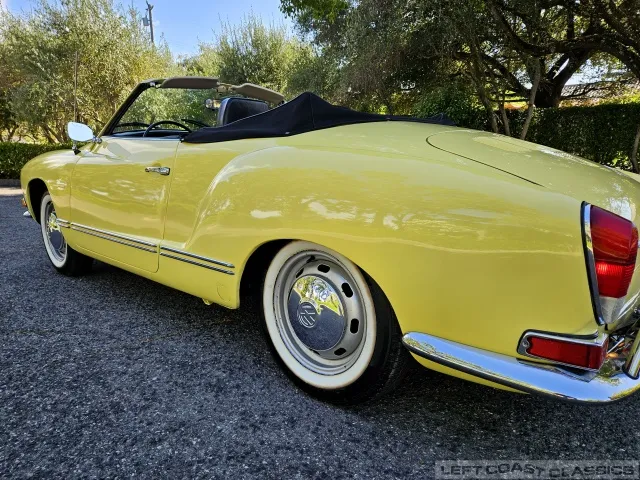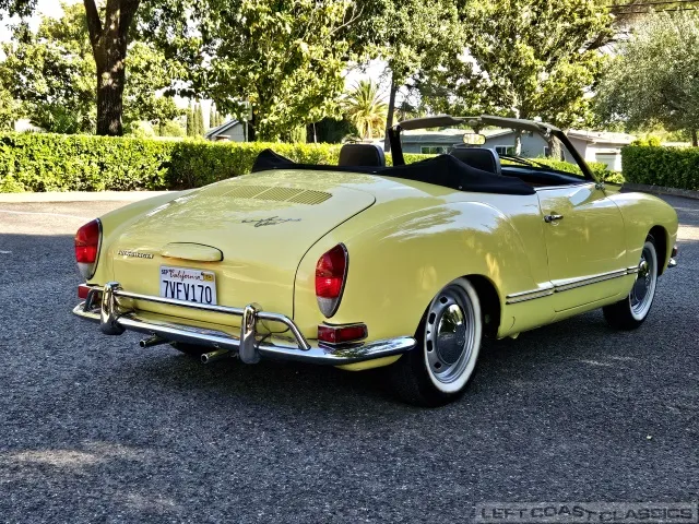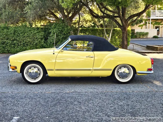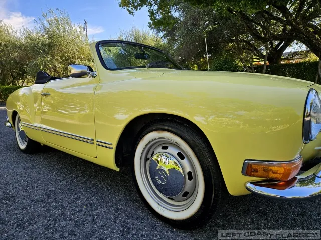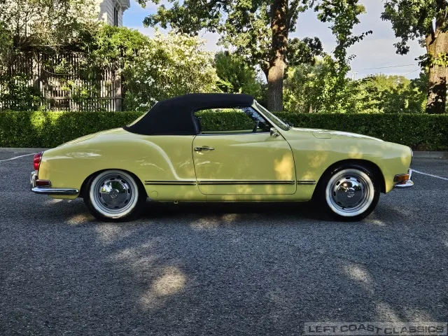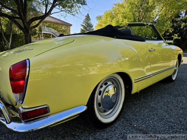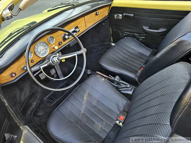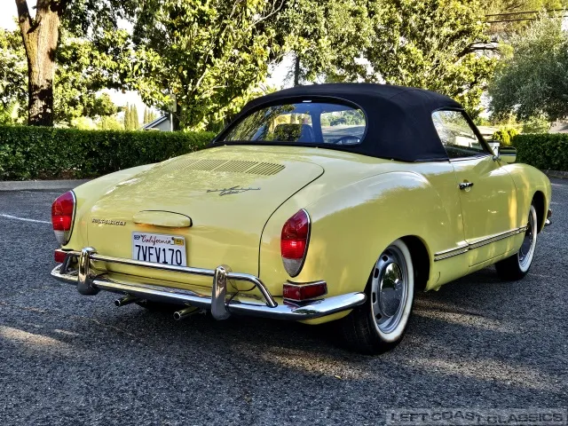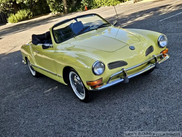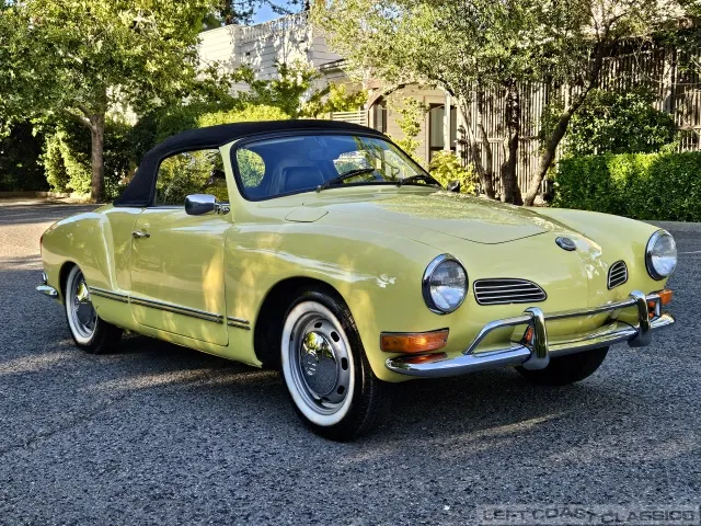 This 1970 Volkswagen Karmann Ghia Convertible, a Type 14 built in August 1969, is finished in Shantung Yellow with a black vinyl interior and a newer canvas top. Acquired by its current owner in 2016, it has been driven sparingly, under 2,000 miles in nine years, and received several mechanical improvements to ensure reliable performance. Showing 97,859 miles (actual mileage unknown), this driver-quality example is ready for weekend cruises.