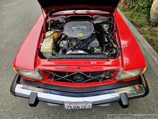 More recently, the car has received thoughtful attention addressing common R107 wear items: the steering coupler, both front tie rods, and the center/drag link were replaced and followed by a proper alignment. The front subframe bushings were renewed, transmission cooler hoses replaced, and the braking system flushed.