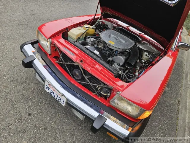A new battery has been installed, routine services performed, and the hood insulation pad replaced. The result is a car that starts easily, steers straight, and feels noticeably tighter and more composed than many 380SLs that have not been similarly sorted.