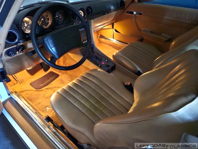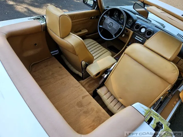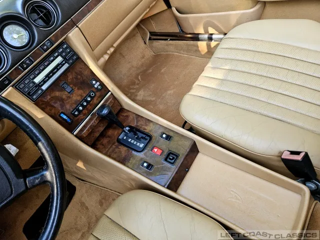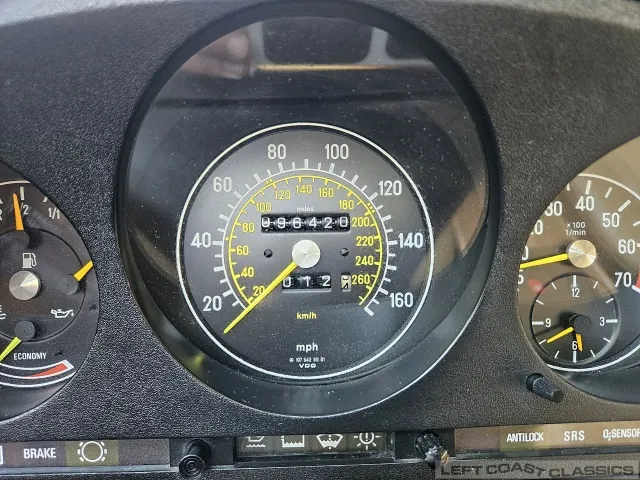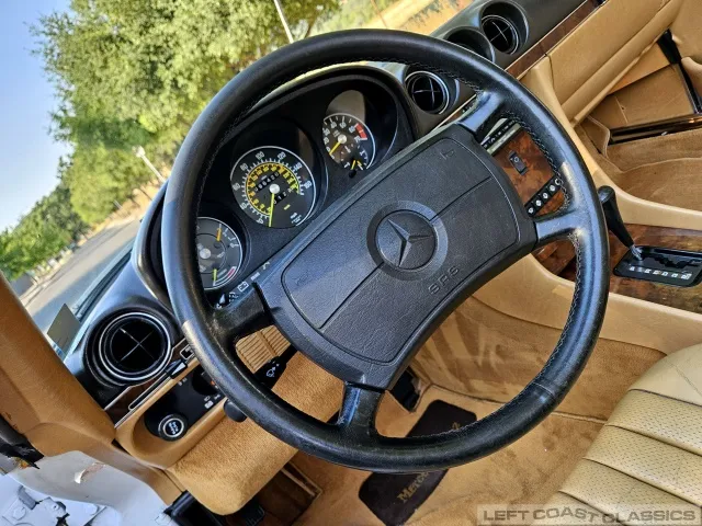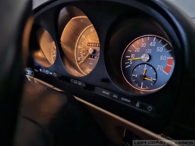 All gauges and lights are in good working order, though the power door lock system is currently inoperative. Overall, the cockpit is a lovely place to spend time, offering the luxurious feel that defines the 560SL experience.