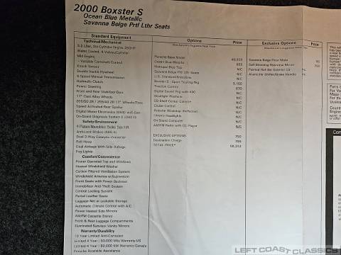 View close-up detailed photos of this 2000 Porsche Boxster S' interior, engine, undercarriage and body. This cool sports car is for sale from Left Coast Classics in Sonoma California