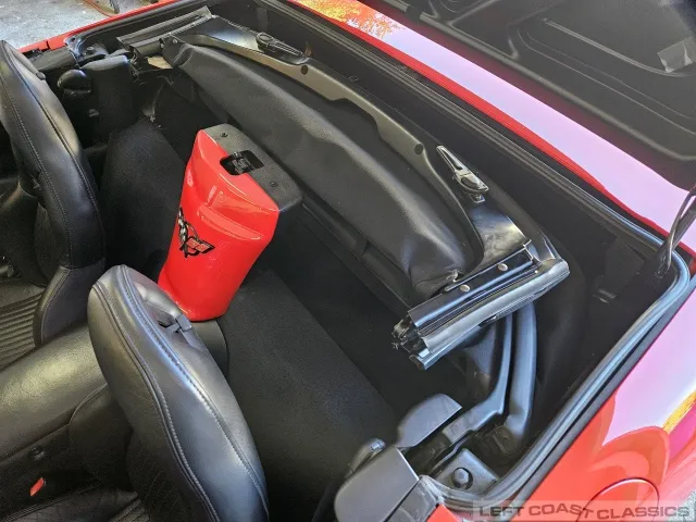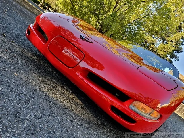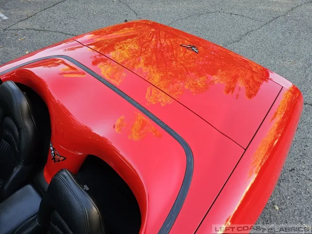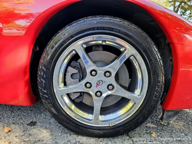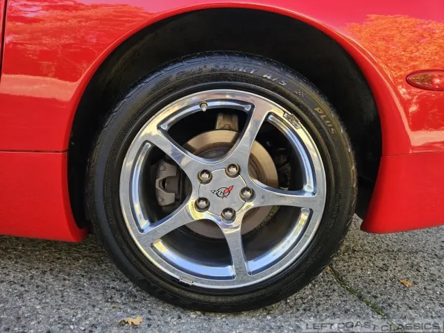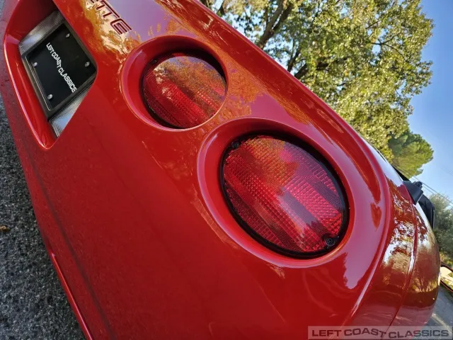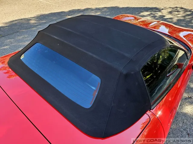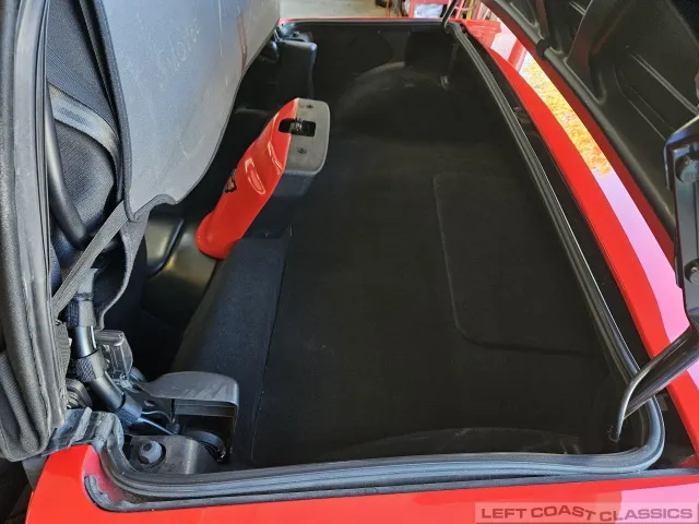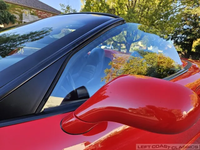 Finished in brilliant Torch Red, the paint remains glossy and well-preserved, showing straight body panels, precise gaps, and clean trim throughout. The car received a professional cosmetic repair in early 2024 after a minor scrape on the driver’s side, now virtually undetectable and finished to a very high standard. The glass is clear, the weatherstripping supple, and the lenses bright. It sits on polished 5-spoke aluminum wheels wrapped in Goodyear Eagle F1 tires, underscoring its purposeful yet elegant stance.
