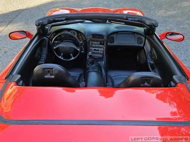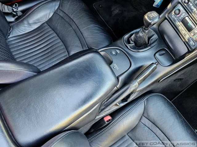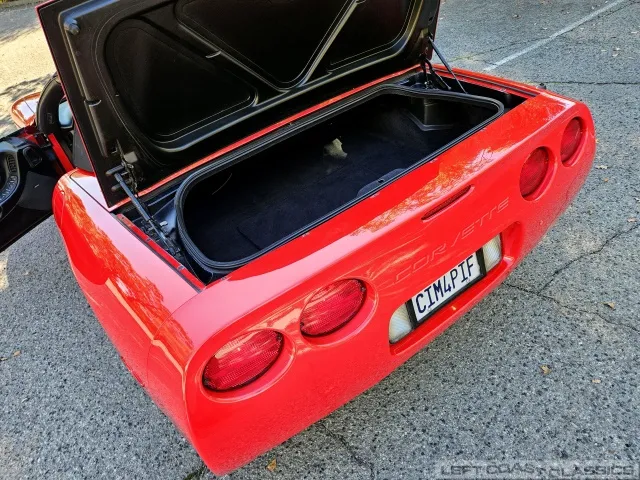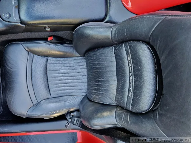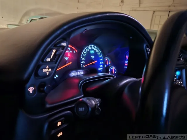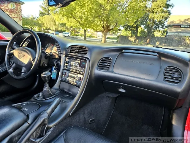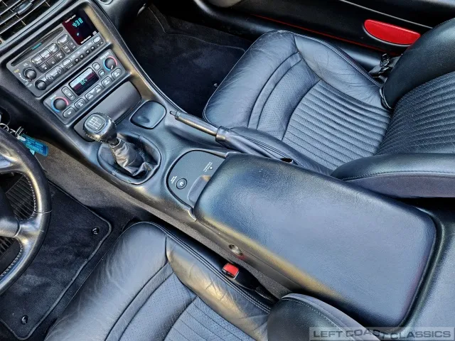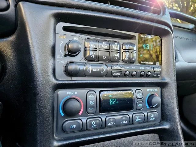 Inside, the black leather cockpit presents in excellent condition—no odors, minimal wear, and a clear indication of careful ownership. The power sport seats retain firm bolsters, the leather remains soft, and all switchgear works properly. Equipment includes dual-zone automatic climate control, memory settings for the driver’s seat and mirrors, keyless entry with alarm, power windows and locks, illuminated storage, and a premium Bose sound system with a remote 12-disc CD changer. It’s a non-smoker car that feels and smells as clean as it looks—one of the finer C5 interiors you’ll find.