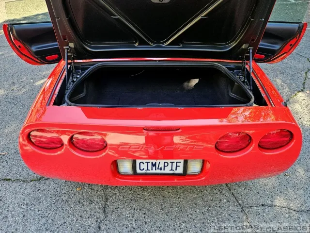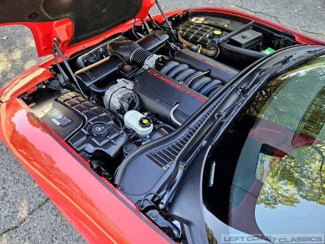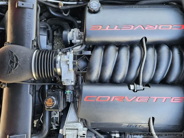 Power comes from the legendary 5.7-liter LS1 small-block V8 paired with the 6-speed manual gearbox, delivering 350 horsepower with that unmistakable Corvette growl. The car feels tight and responsive, with smooth clutch take-up and crisp, effortless shifting. The drivetrain operates exactly as it should—strong power delivery, no hesitation, and excellent oil pressure. Its four-wheel independent suspension, power rack-and-pinion steering, and four-wheel disc brakes with ABS provide confident handling, while traction control and stability assist keep it composed when pushed. A stainless steel exhaust with polished tips completes the car’s performance character, blending everyday drivability with classic Corvette spirit.