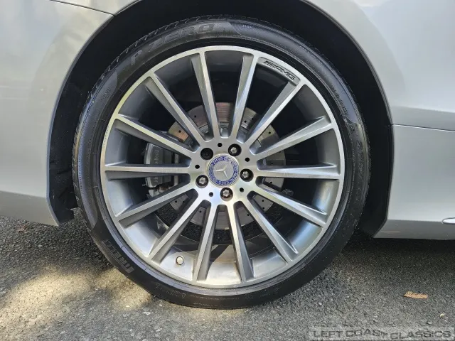The exterior presents beautifully. The Iridium Silver Metallic finish exhibits deep gloss and mirror-like reflection, perfectly complemented by the black convertible top for a timeless and sophisticated look. The 20-inch AMG multispoke wheels provide a refined yet athletic stance and are wrapped in Pirelli all-season tires (245/45R20 front, 275/35R20 rear).