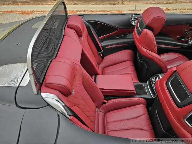 The experience is further elevated by the Burmester High-End 3D Surround Sound System, a 24-speaker, 1,500-watt audiophile setup delivering exceptional clarity and balance. Even with the top down, sound remains rich and immersive thanks to the system’s adaptive compensation for open-air acoustics. Combined with the deep red leather and meticulous craftsmanship, it creates an enveloping, multisensory environment of elegance and precision.